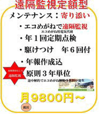 「寄り添い」初期費用無しで、電力量監視システムである「エコめがね」を導入し、発電量を監視、そして定期検査が付いてきます。