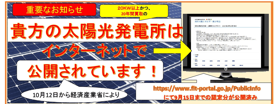 今年10月から、改正FIT法により、事業計画は公開され、発電所の住所も公開されております。