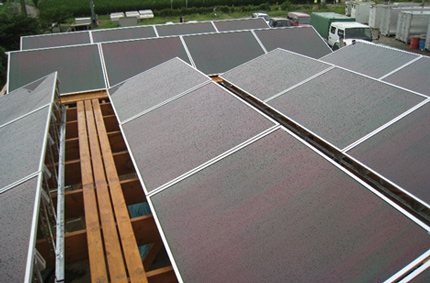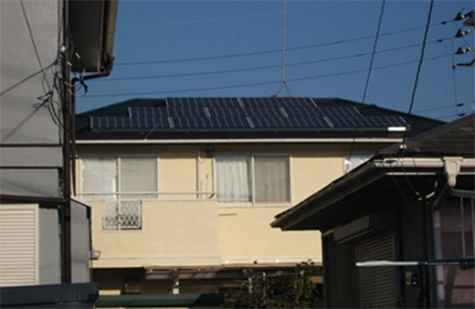 国内大手最後発メーカーの東芝製です。パネル、パワコンとも他社製に自社ブランドを使い、システムを組みます。メガソーラーなどの手法をそのまま家庭用にも持ち込んだシステムです。大手ながら、ガルバ縦葺屋根に対応するなど、最後発ならではの柔軟性を持ちます。従業員の寮のため日中は負荷がなく売電を最大限目指します。
