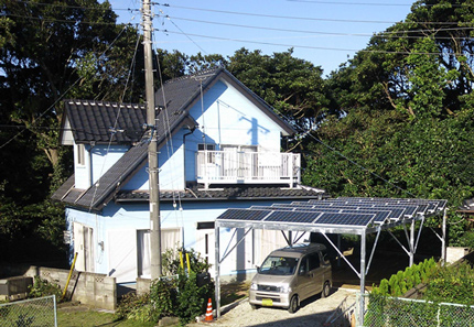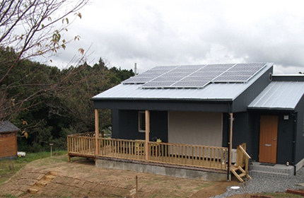 東京在住の個人様の別荘です。建築事務所の提案する田舎暮らしのための低価格住宅の理想を具現化しており、太陽光発電装置の設置に弊社が協力しました。パネルメーカーは九州のEPC、イワテックです。お客様は普段留守にするため、太陽光発電による売電が威力を発揮し、「自分で維持費を稼ぐ別荘」です