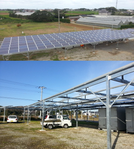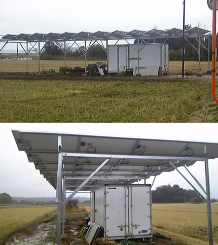 太陽光発電の架台により下の土地を殺すことなく、有効に利用するということを実現しました。現在の農地の上の空間の有効利用と言う観点から「ソーラーシェアリング」という考えが、ございます。