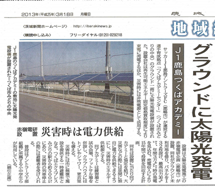 つくばの鹿島アントラーズ育成機関、つくばアカデミーセンター敷地内に設置したシステムです。アントラーズ様が地域との防災協定を結んでいますので、その際の電源供給に協力いたします。